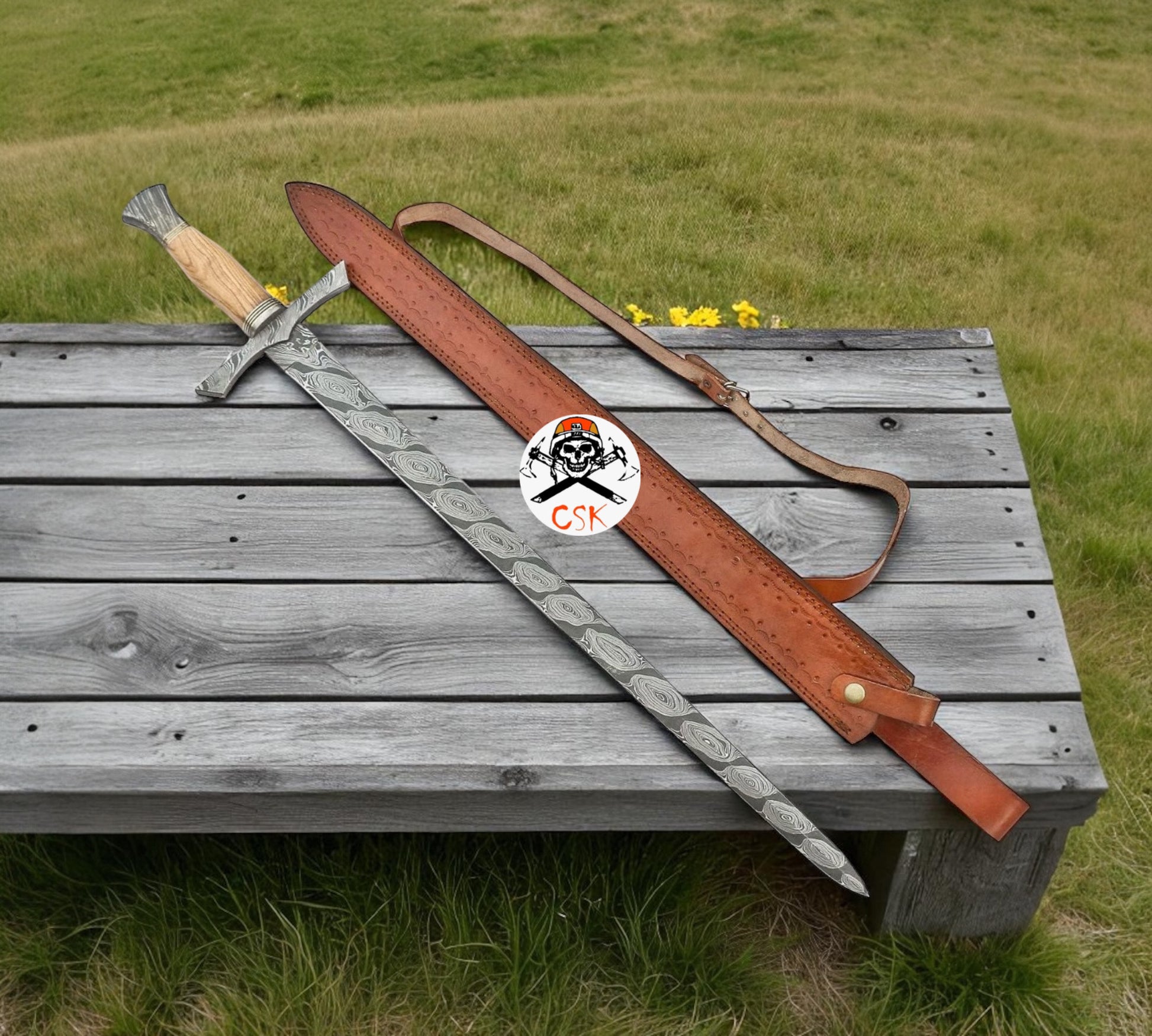 Handmade Damascus Steel Medieval Battle Ready Sword With Sheath