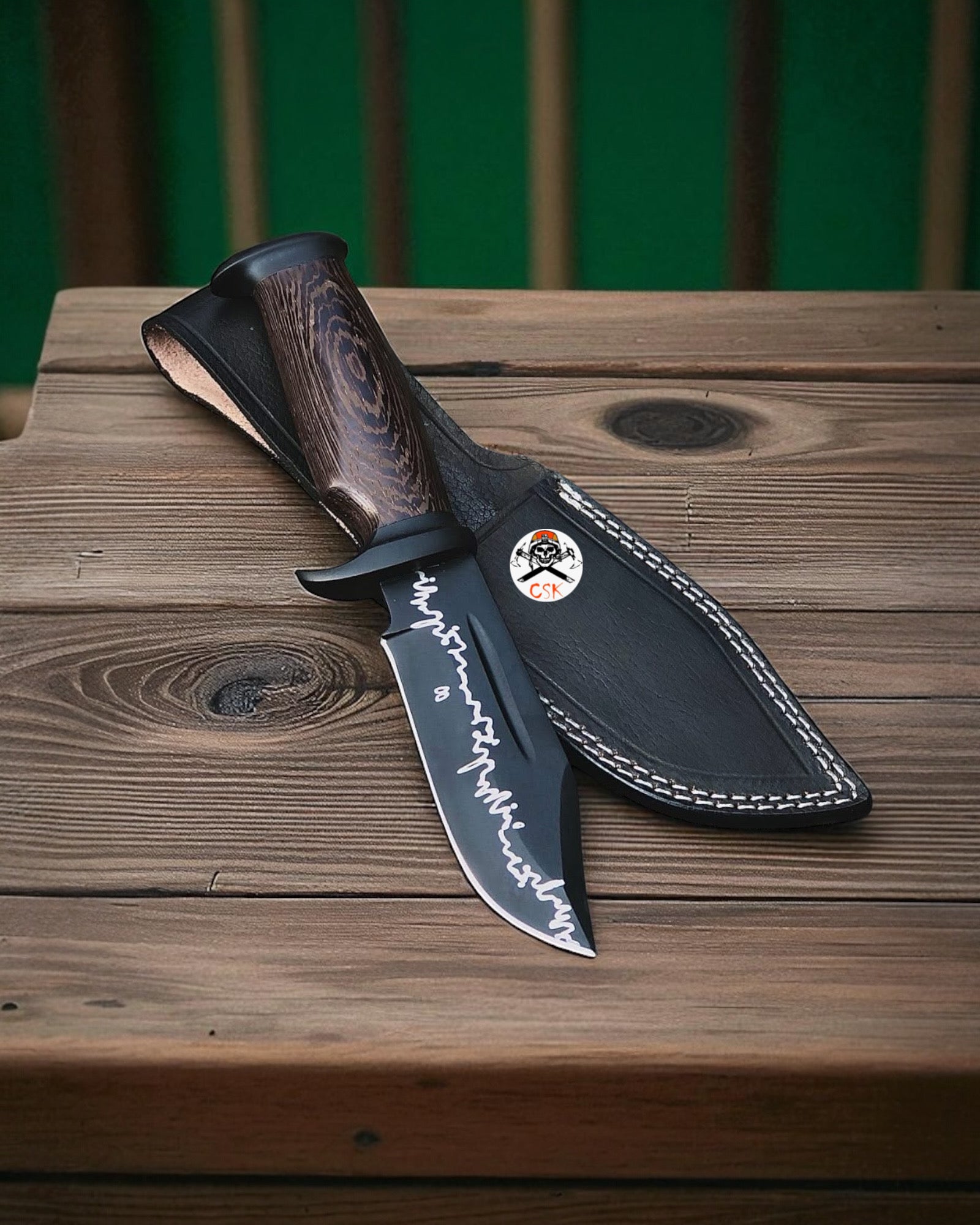 ShadowForge Black Blade Handmade Hunting Knife with Wenge Wood Grain Handle
