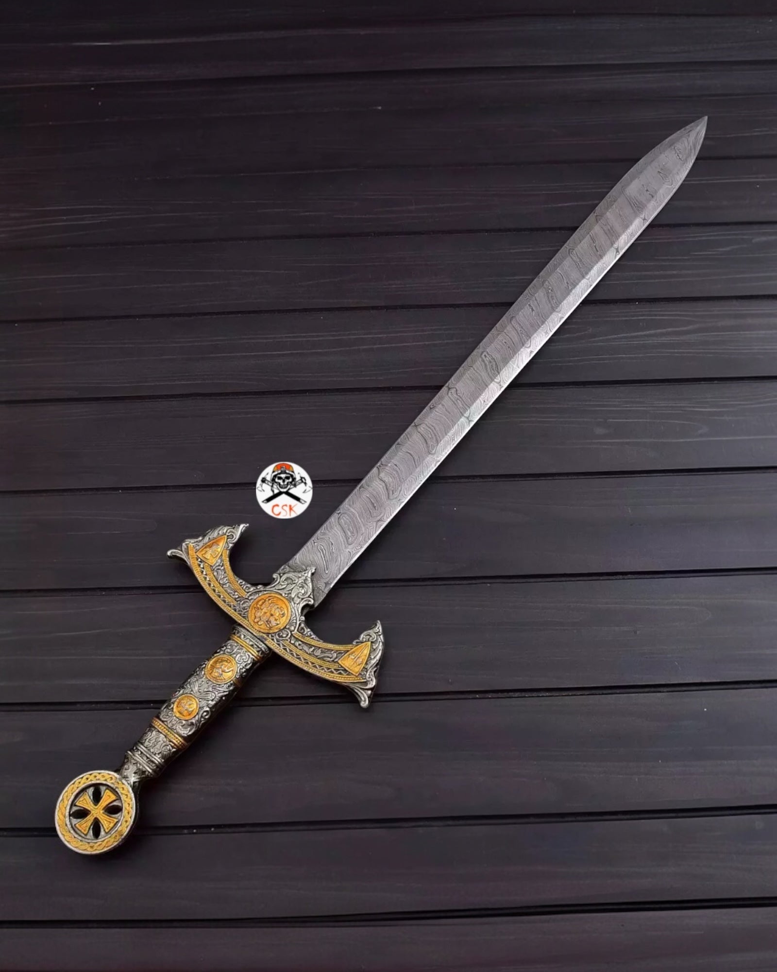 Templar Knights Sword Damascus Steel Crusader Sword Custom Hand Forged Blade