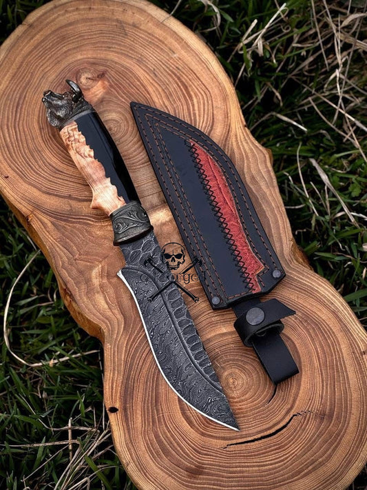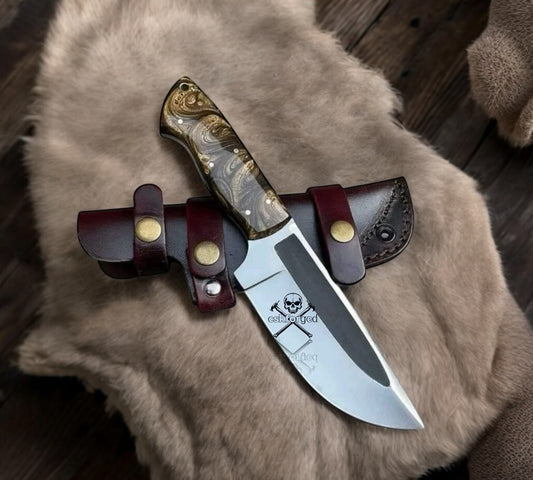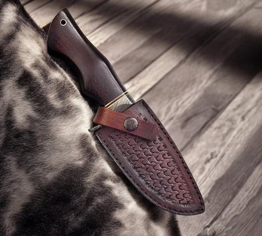 CROSS DRAW SHEATH WITH DAMASCUS KNIFE & RESIN HANDLE