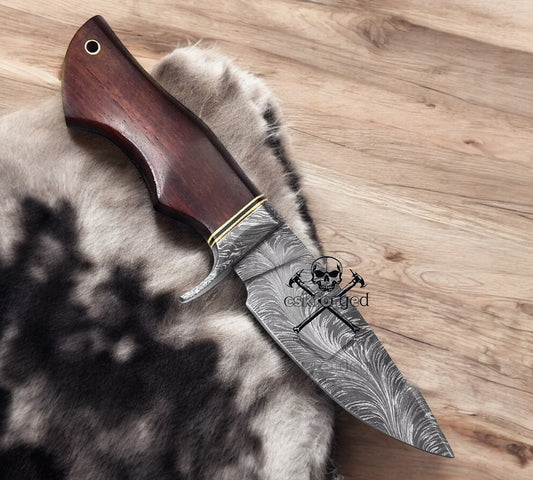 Cross Wirecut Blade – Damascus Steel & Rose Wood Handle