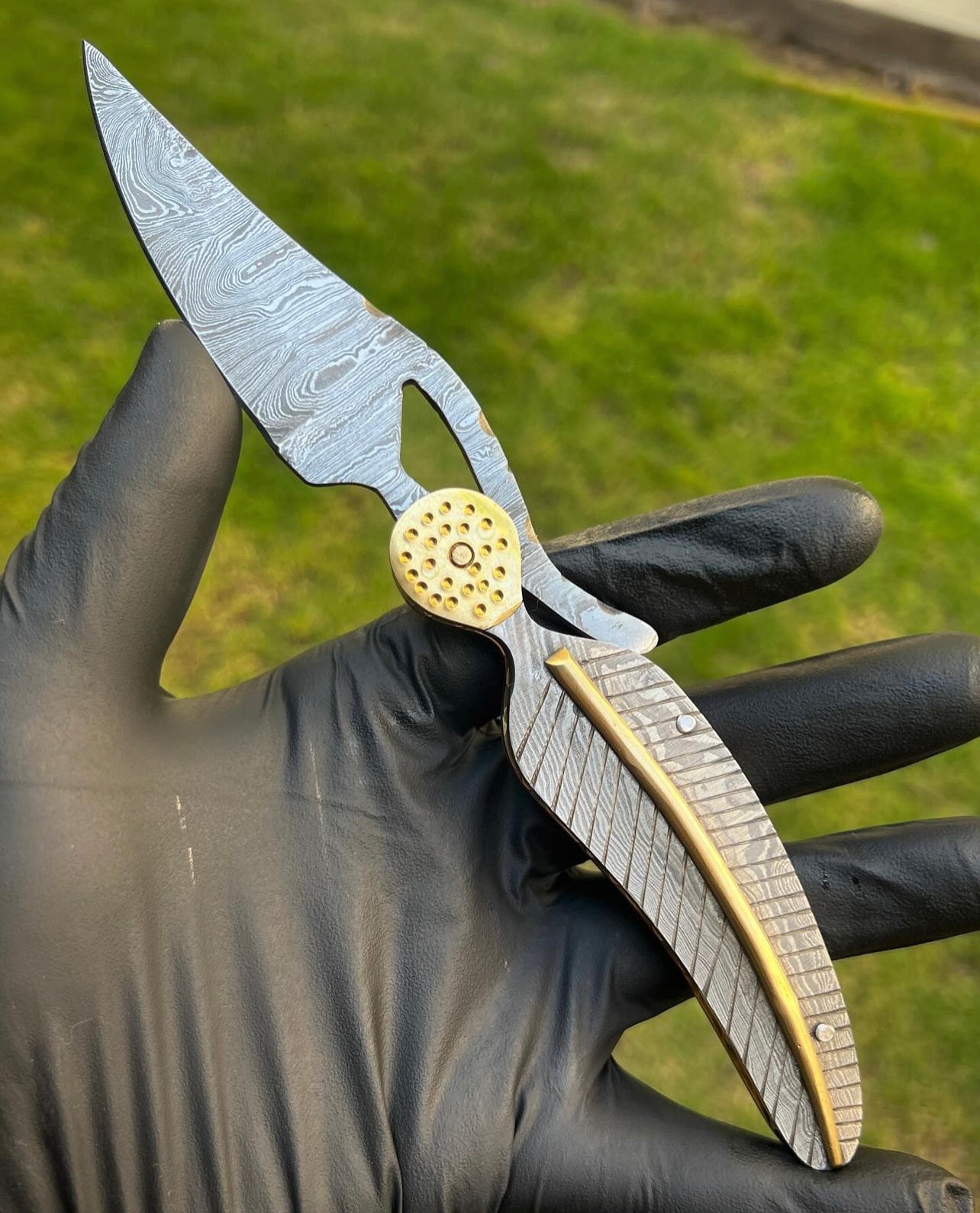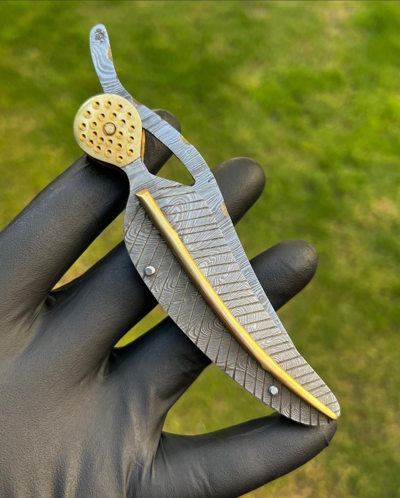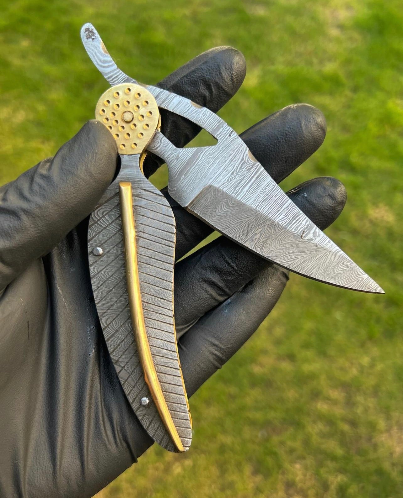 Damascus Leaf Pocket knife, Folding Knife, Every Day Carry Knife