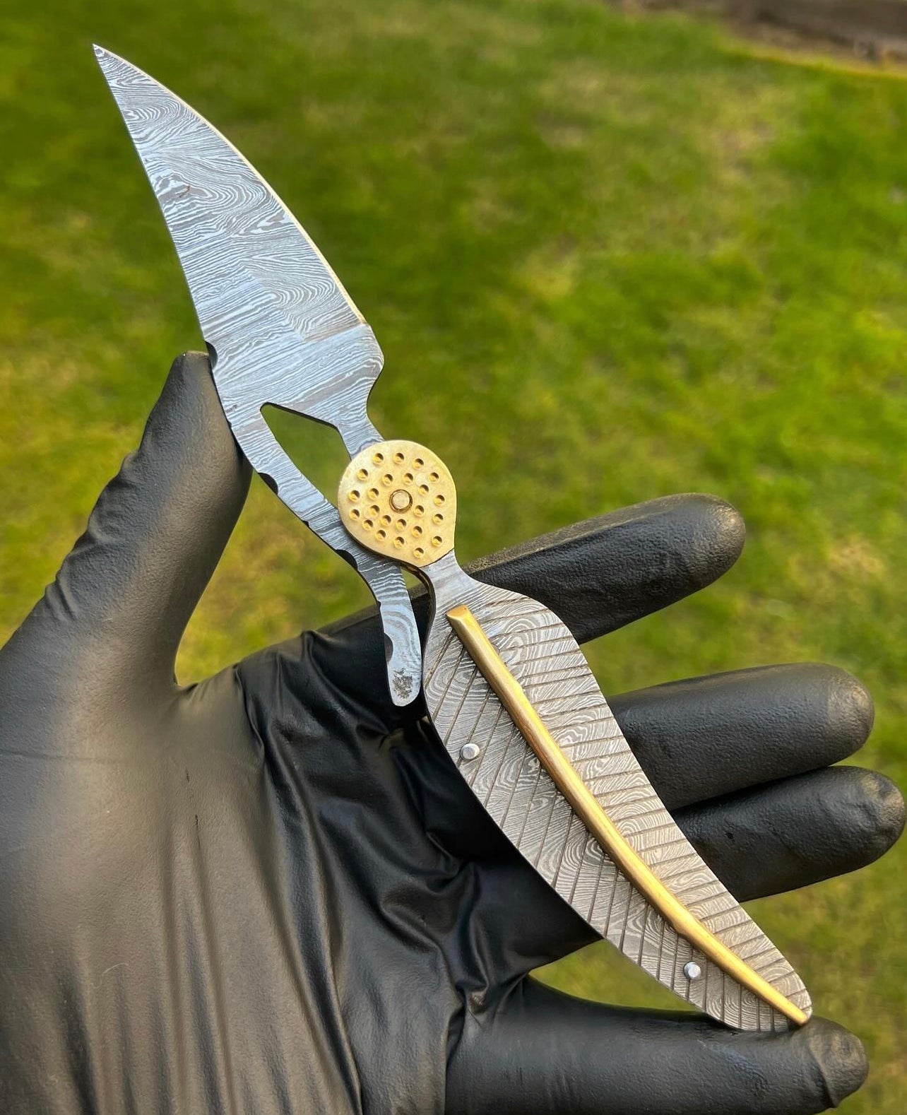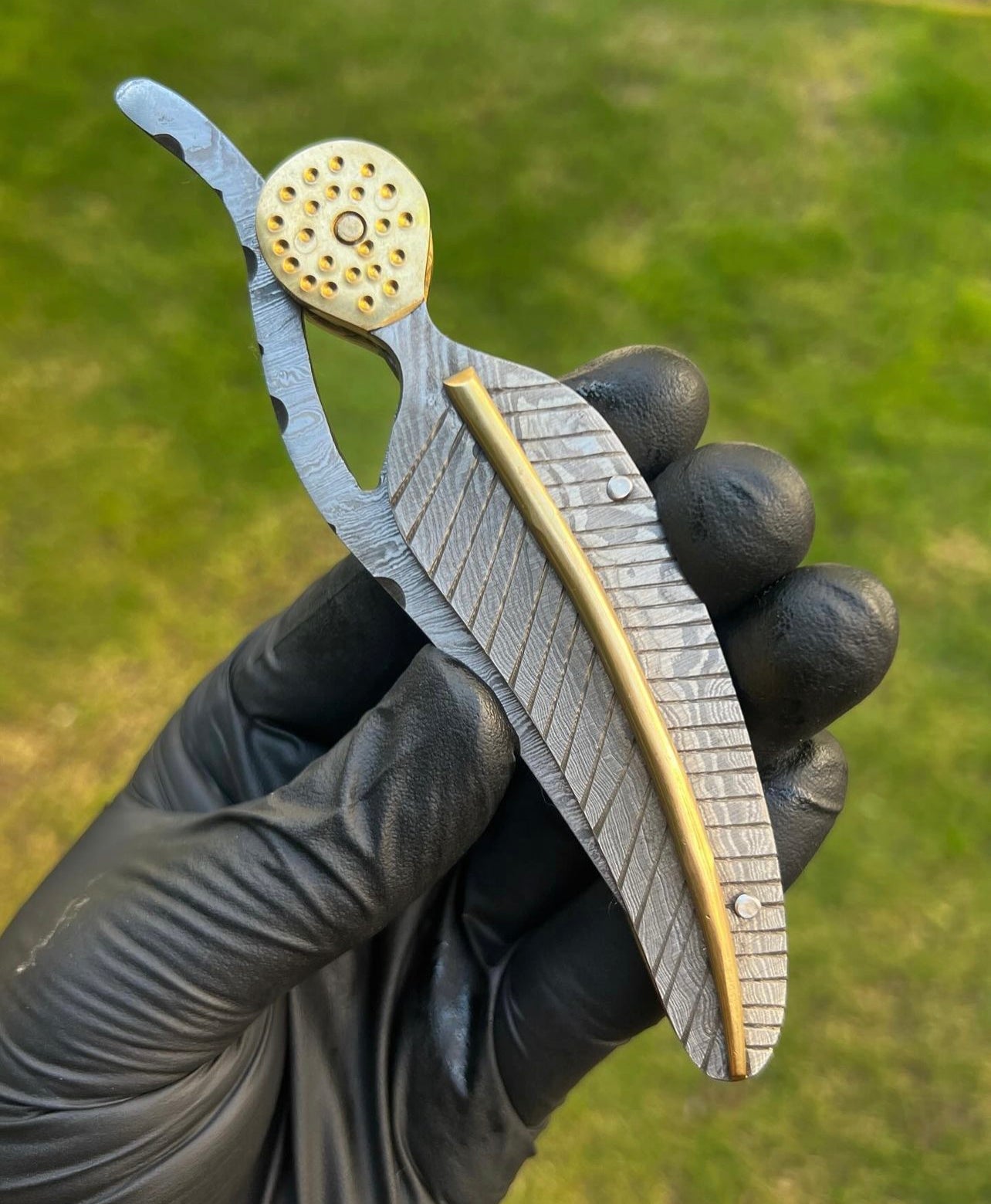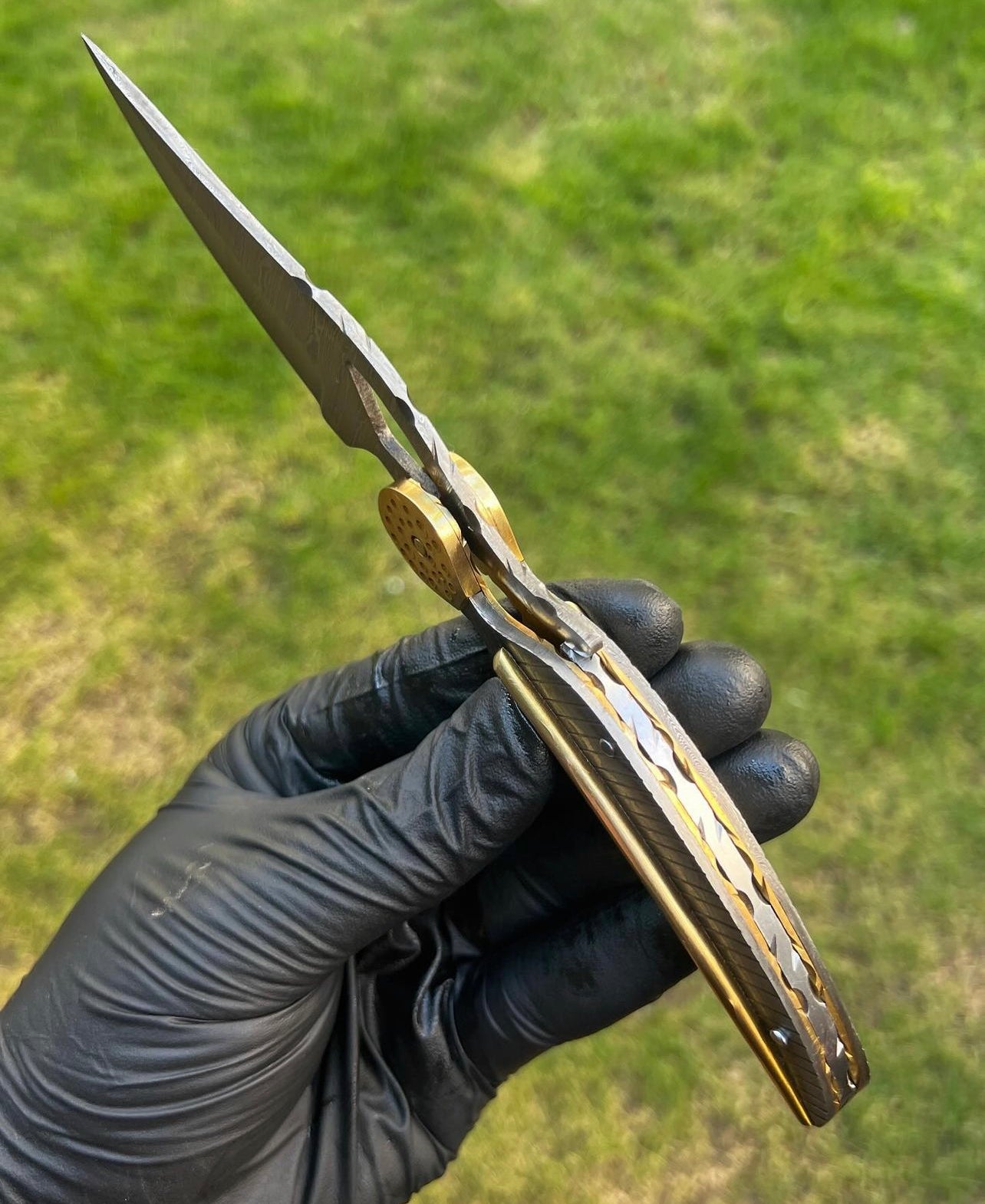 Damascus Leaf Pocket knife, Folding Knife, Every Day Carry Knife