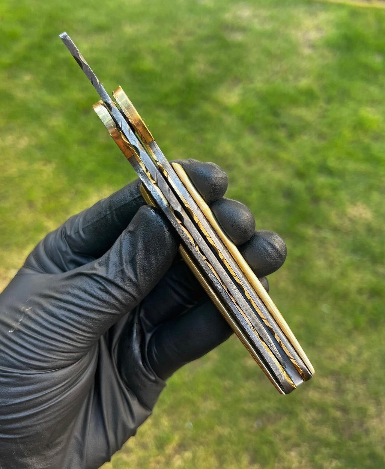 Pattern: Wind & Mix twist Fire pattern Damascus Blade, Extreme custom Brass File-work