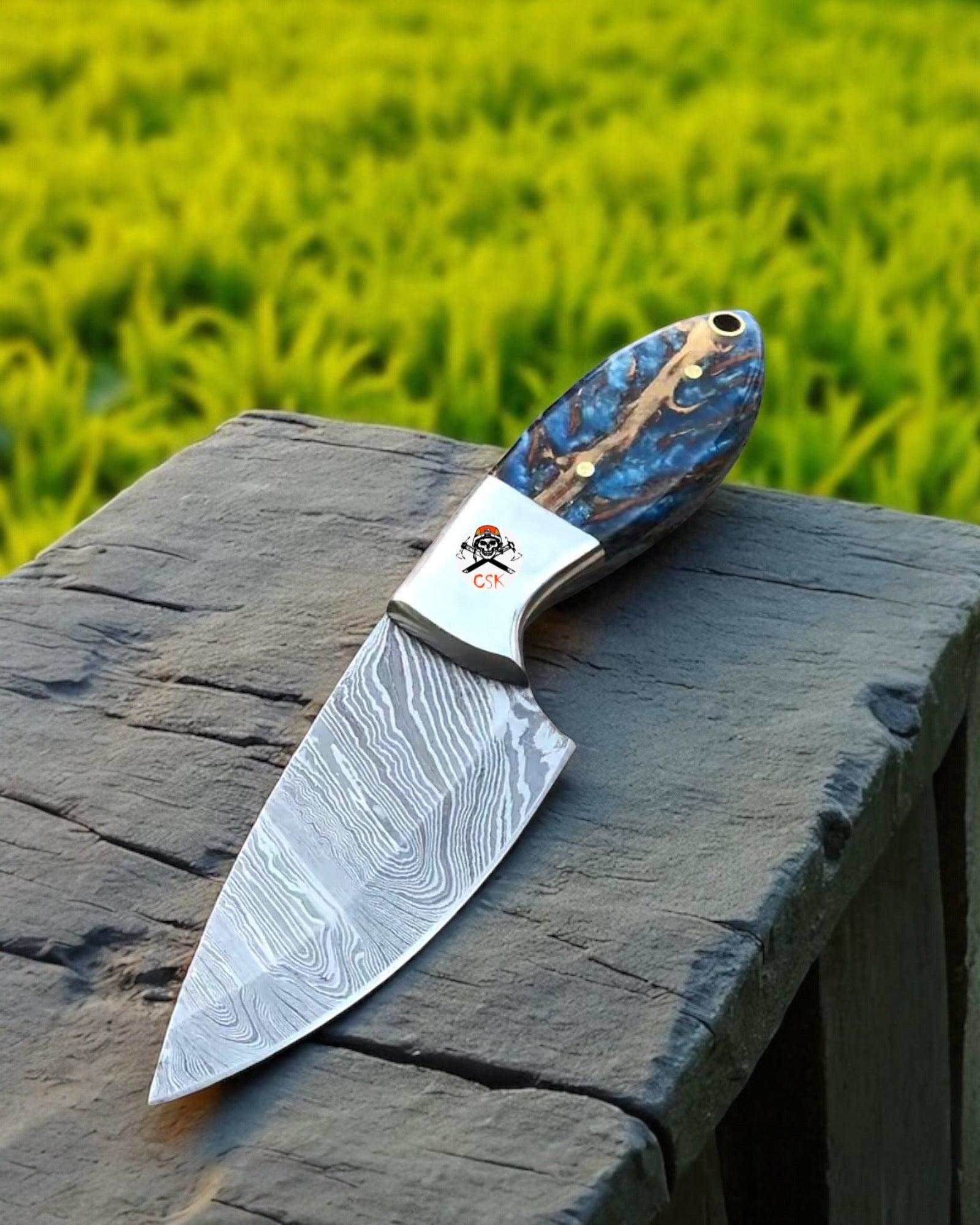 Pinecone Resin Damascus Steel Knife Handmade Collector’s Blade