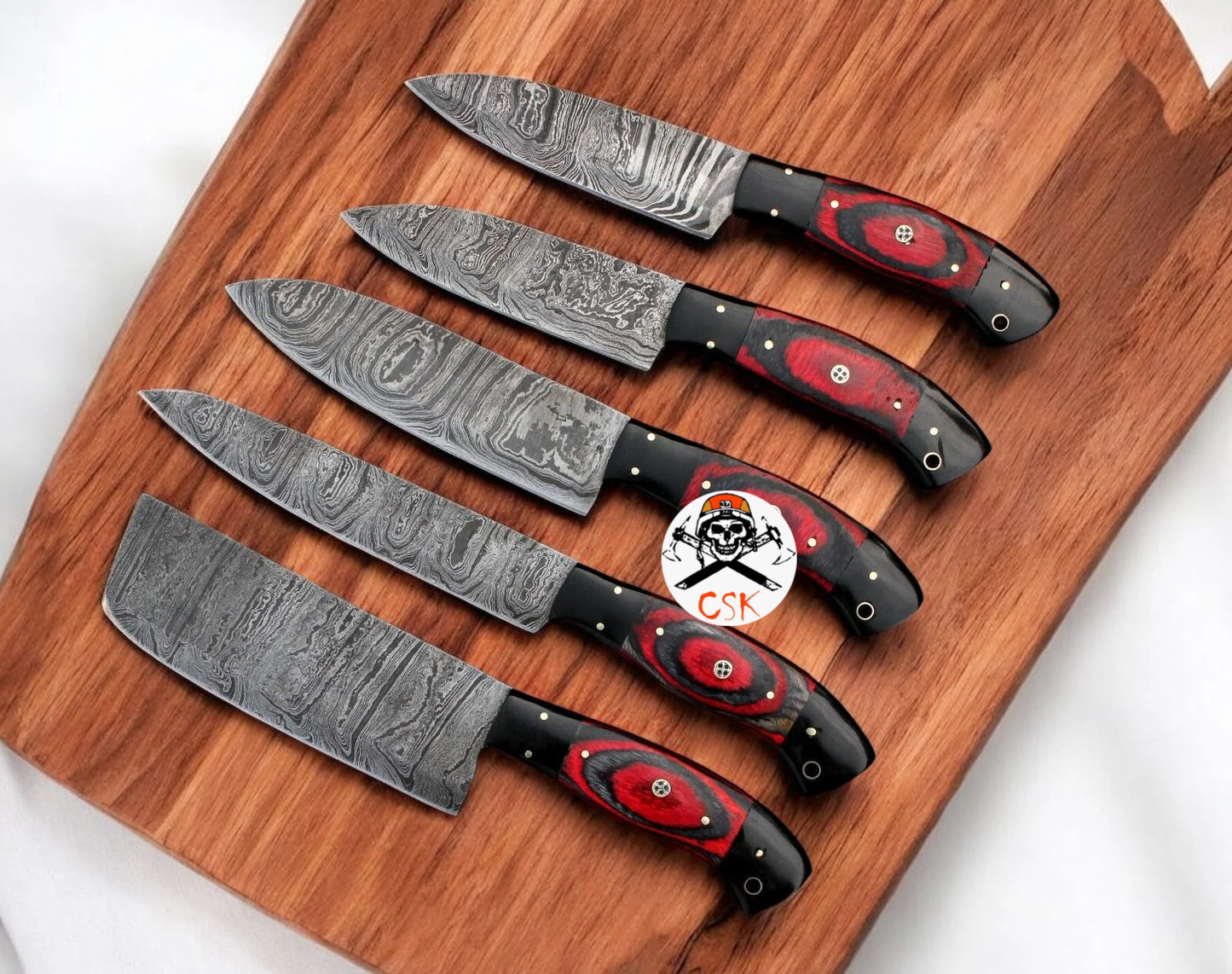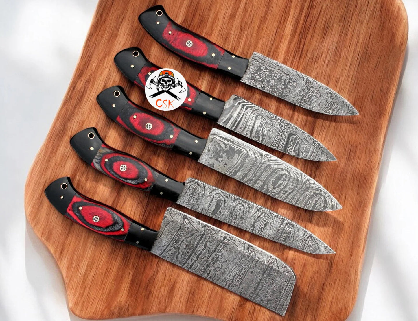 Exquisite Handmade 5pcs Chef Knives - Damascus Steel Masterpiece Kitchen Set
