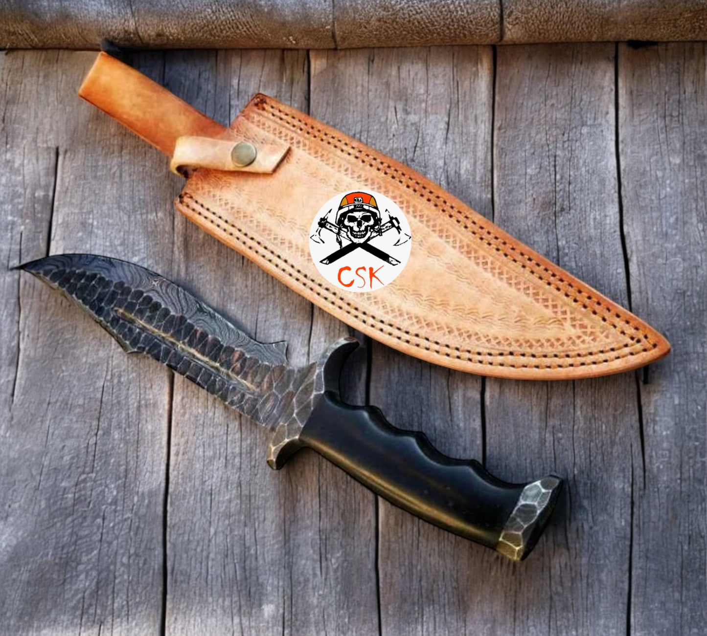 Introducing the epitome of craftsmanship and functionality, the csk Handforged Tactical Bowie Knife with Custom Leather Sheath. This exquisite knife boasts a perfect fusion of artistry and utility, meticulously handcrafted to elevate your outdoor experiences to unparalleled heights.