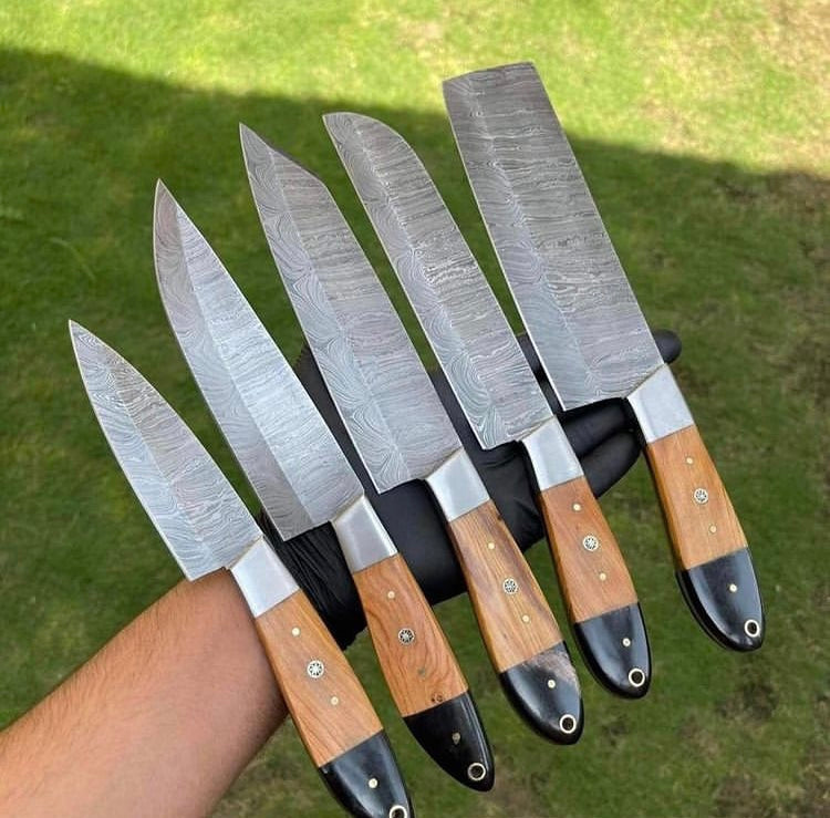 Handmade Damascus steel kitchen chef knives set
